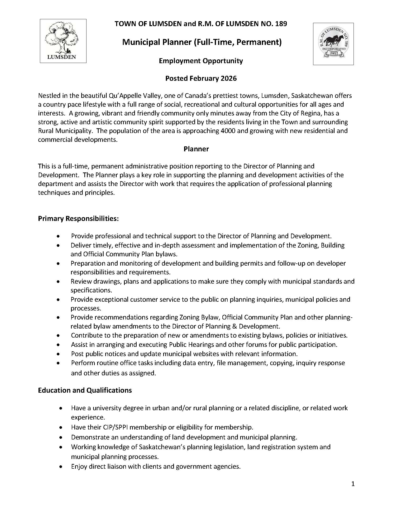 Temporary Planner - One-Year Term: Click here if you would like to print PDF version