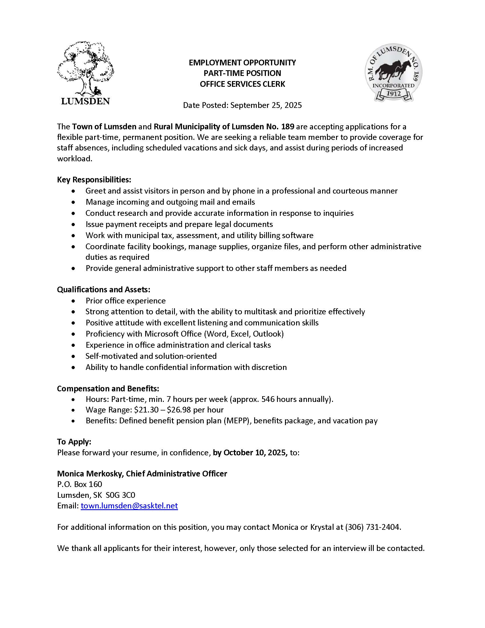 Part Time Office Services Clerk: