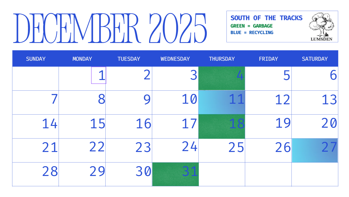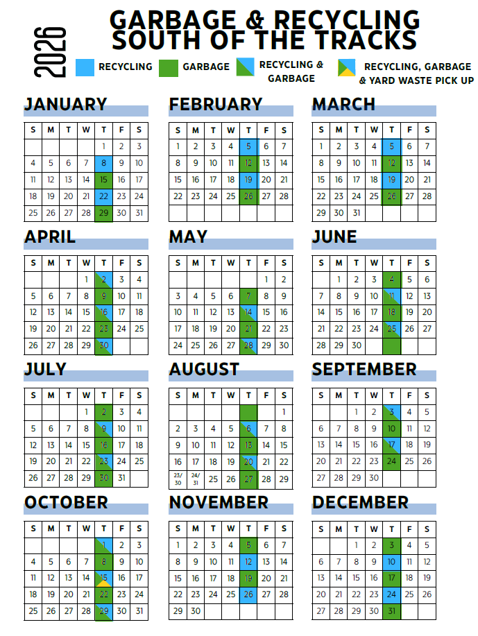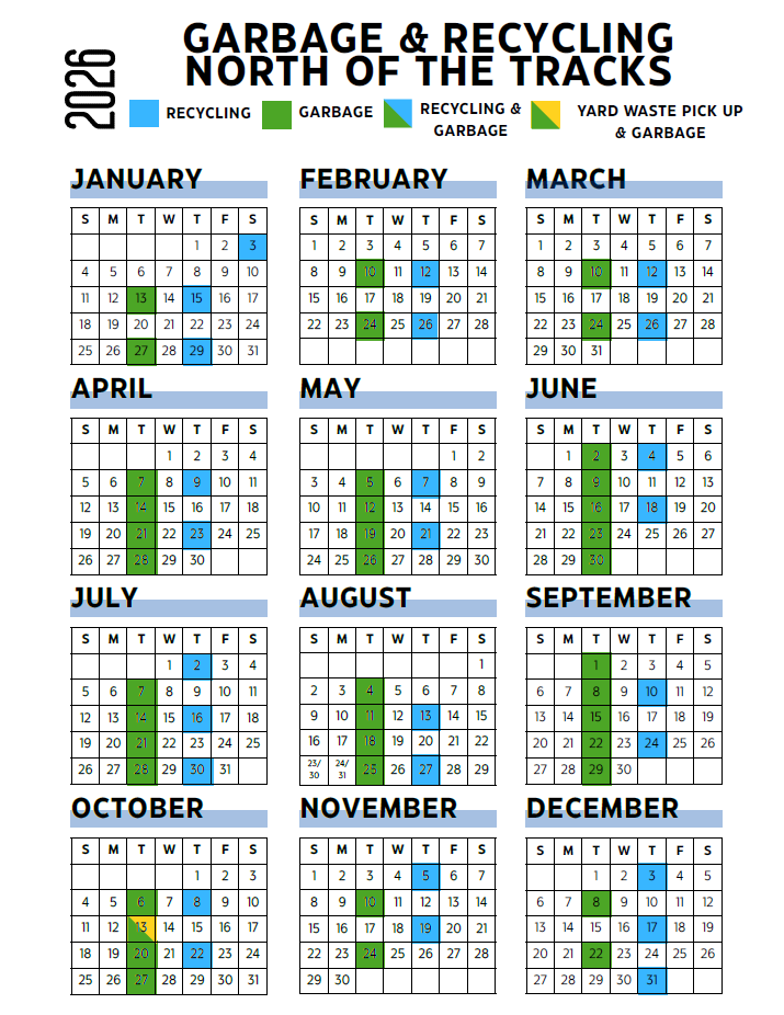 | Every Other Tuesday - indicated in blue | North Side of the Tracks |