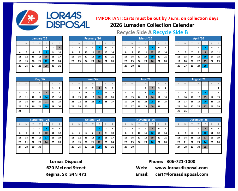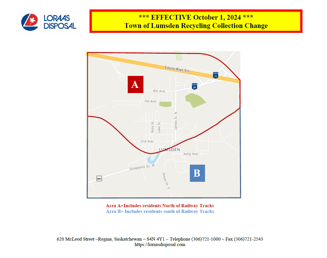 Recycling in the Town of Lumsden is contracted to Crown Shred & Recycling Ltd / Loraas Disposal South. The route through Lumsden has changed slightly, commencing with Schandre Estates and Fawn Ridge subdivisions. Please have your bins out by 7am.