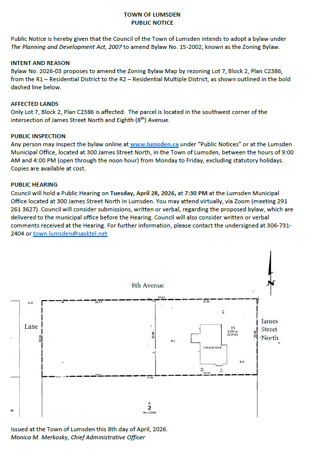 Council will be holding a Public Hearing on Tuesday, April 28, 2026 at 7:30 PM