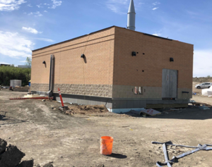 Brickwork continues on the outside of the Wastewater Treatment Building.
